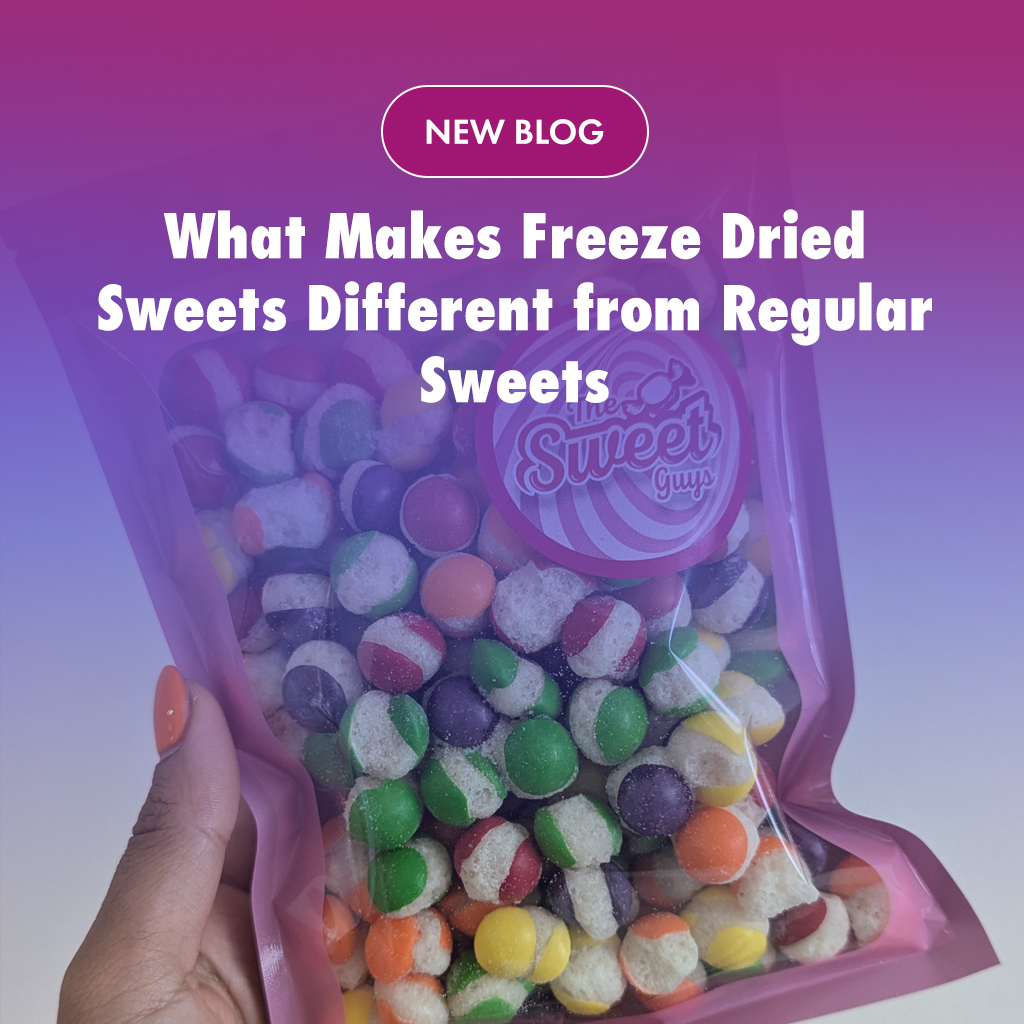 Freeze dried sweets are created by removing moisture from sweets while keeping their original flavour. This process transforms their texture, turning chewy sweets into light, crisp treats.